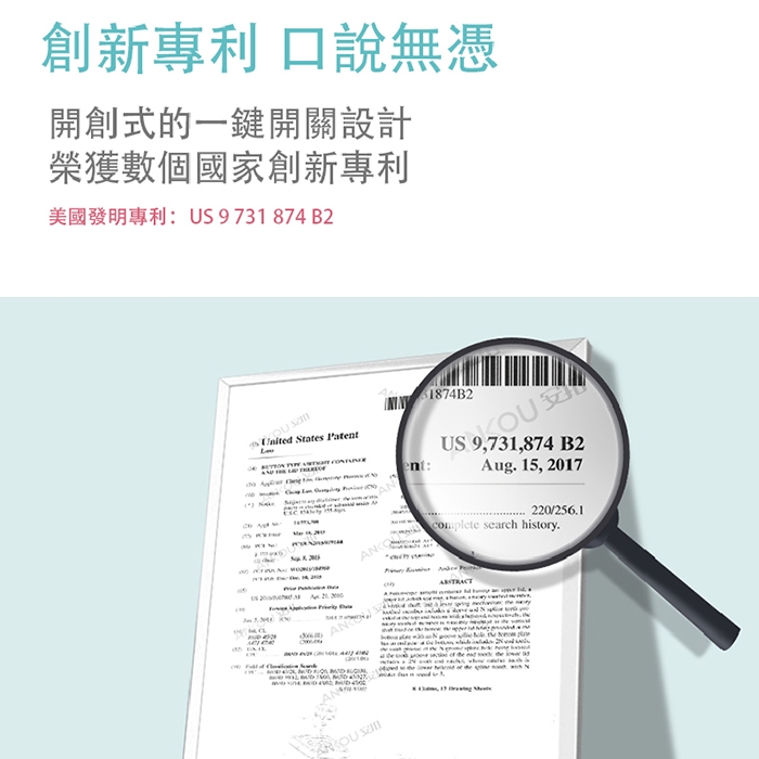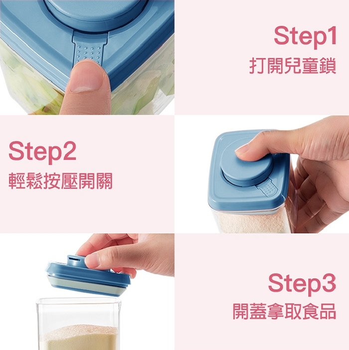 獨特一鍵式啟閉密封功能可單手操作,用於收納各