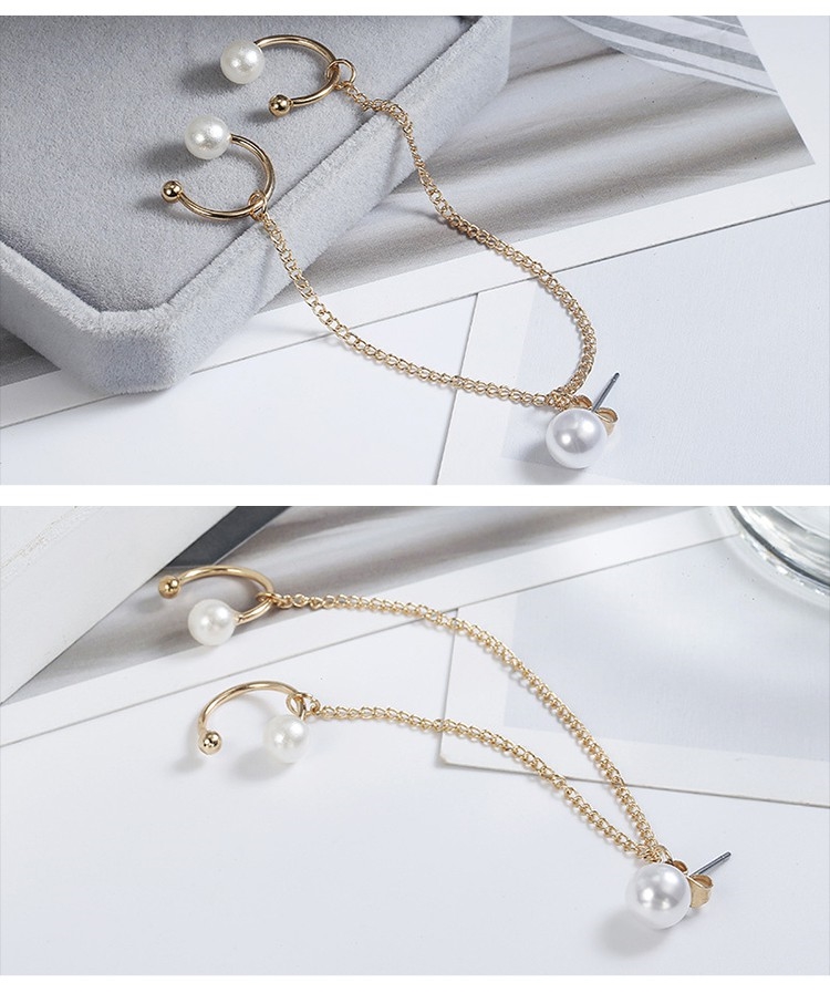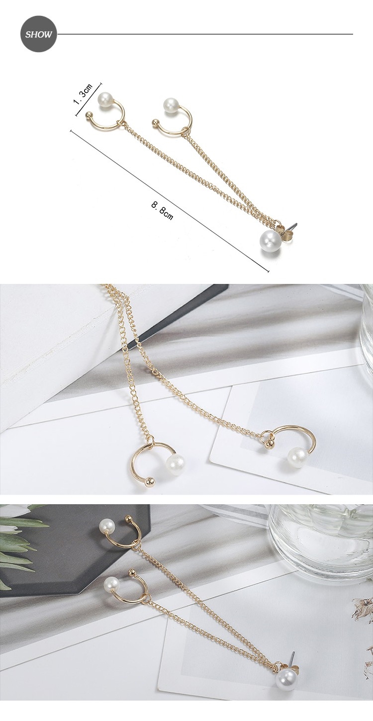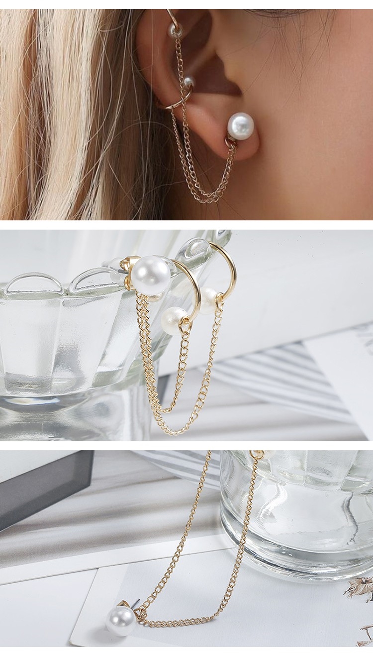 【00:00】流蘇珍珠綴鍊耳夾造型耳釘 單只
