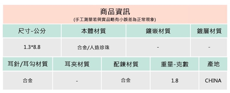 ◆合金飾品一經使用可能隨時間失去光澤或褪色,此為正常物理現象,妥善使用保存可延長飾品壽命。