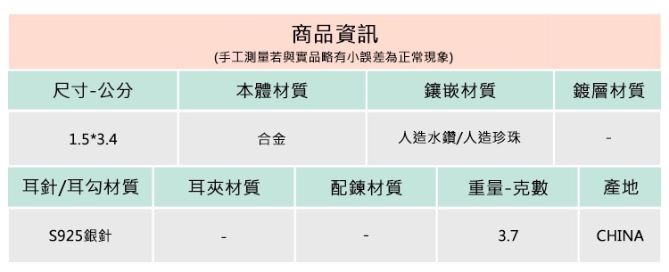 ◆合金飾品一經使用可能隨時間失去光澤或褪色,此為正常物理現象,妥善使用保存可延長飾品壽命。
