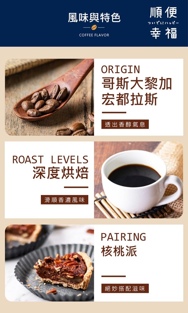 順便幸福-黑糖烤杏仁咖啡豆-規格說明: