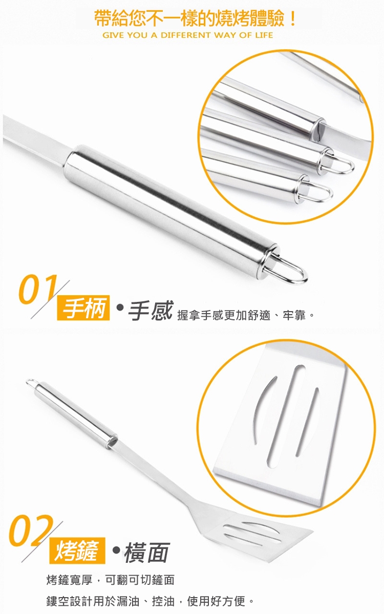 產品品名:戶外燒烤不鏽鋼工具3件組