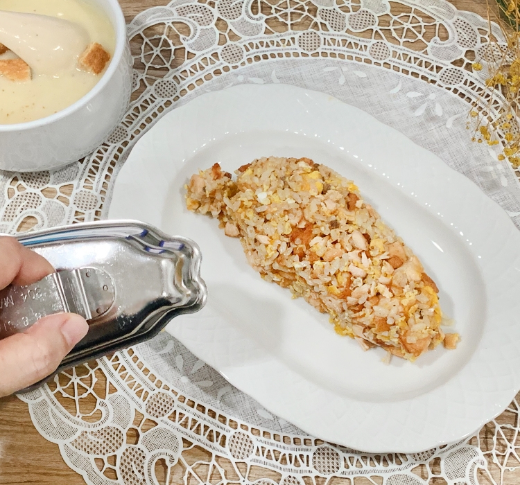 ※如果米飯比較黏,要在模具上先刷點油更易成型喔