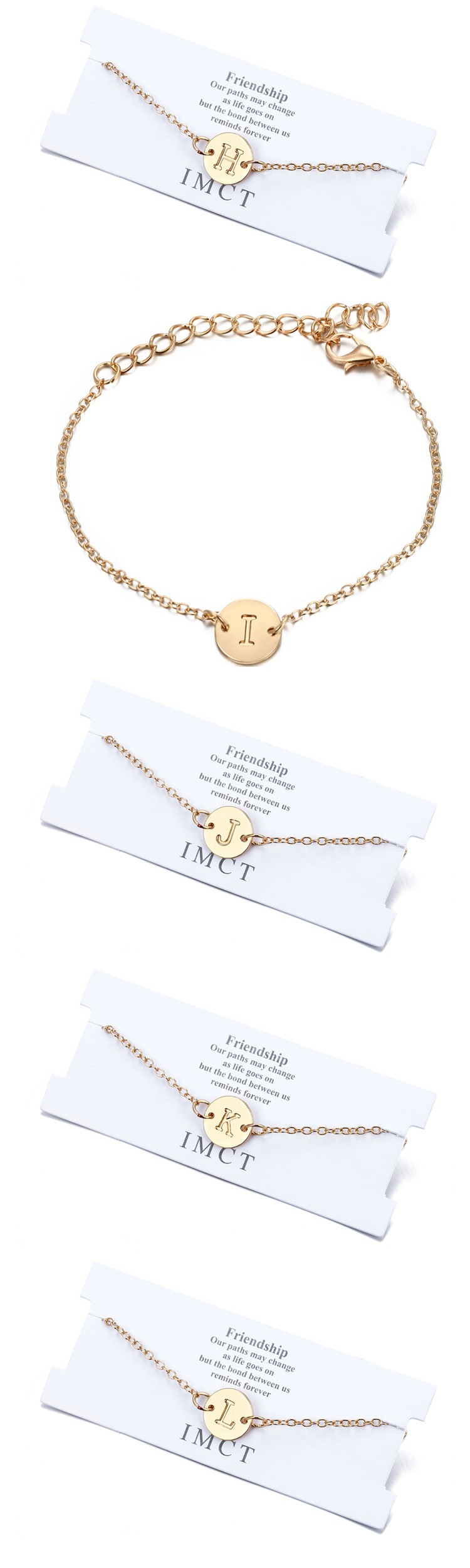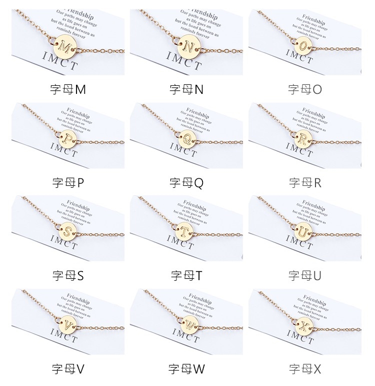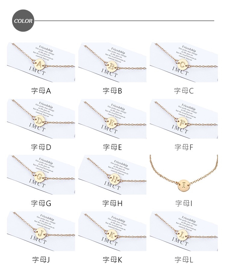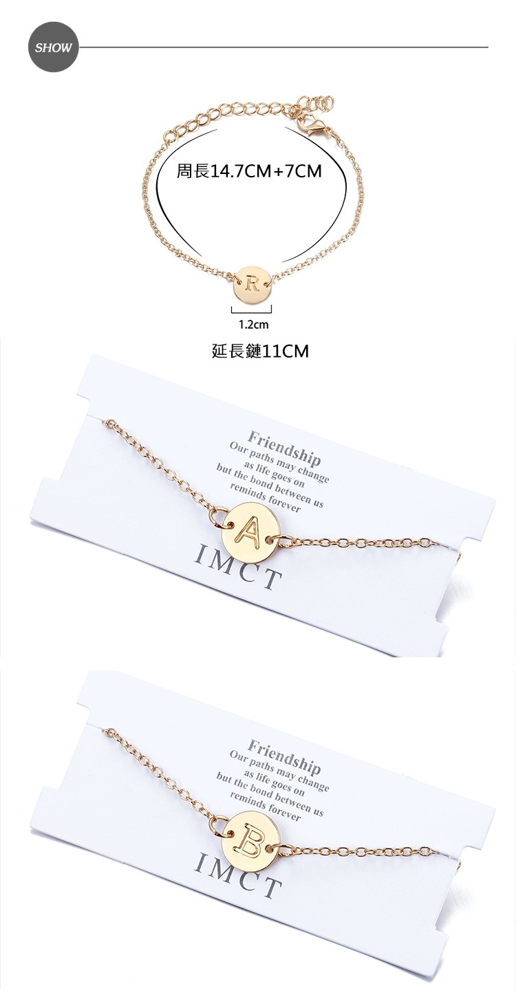 【00:00】歐美時尚簡約金色小圓片字母造型手鍊 (26款任選)