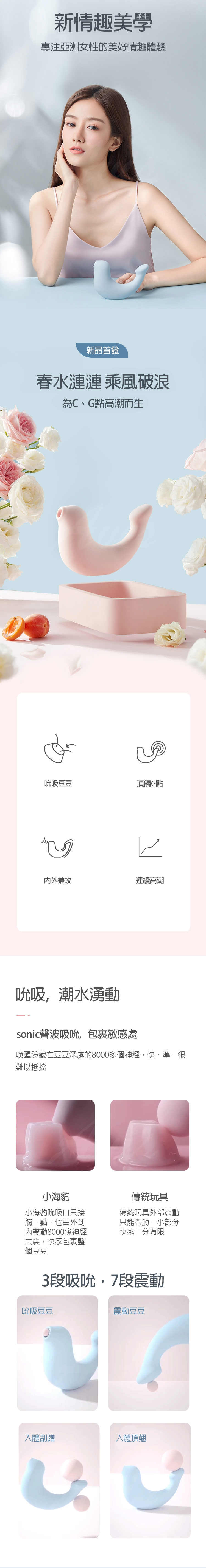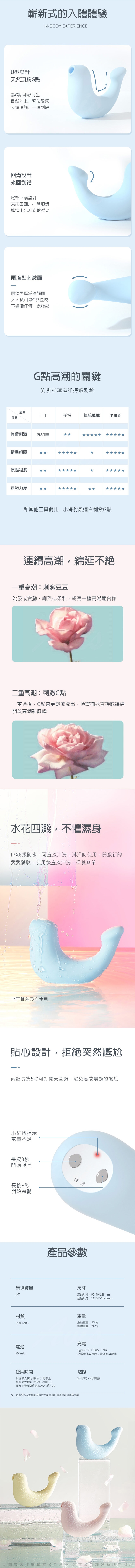 說起G點是Y道內部比較敏感的區域,刺激其他區域能獲得的快感有限,所以很多女生都會追求G點高潮最重要的兩個點是:對點強施壓和持續高頻刺激,而小海豹獨特的U型入體設計,完美解決了這個問題。