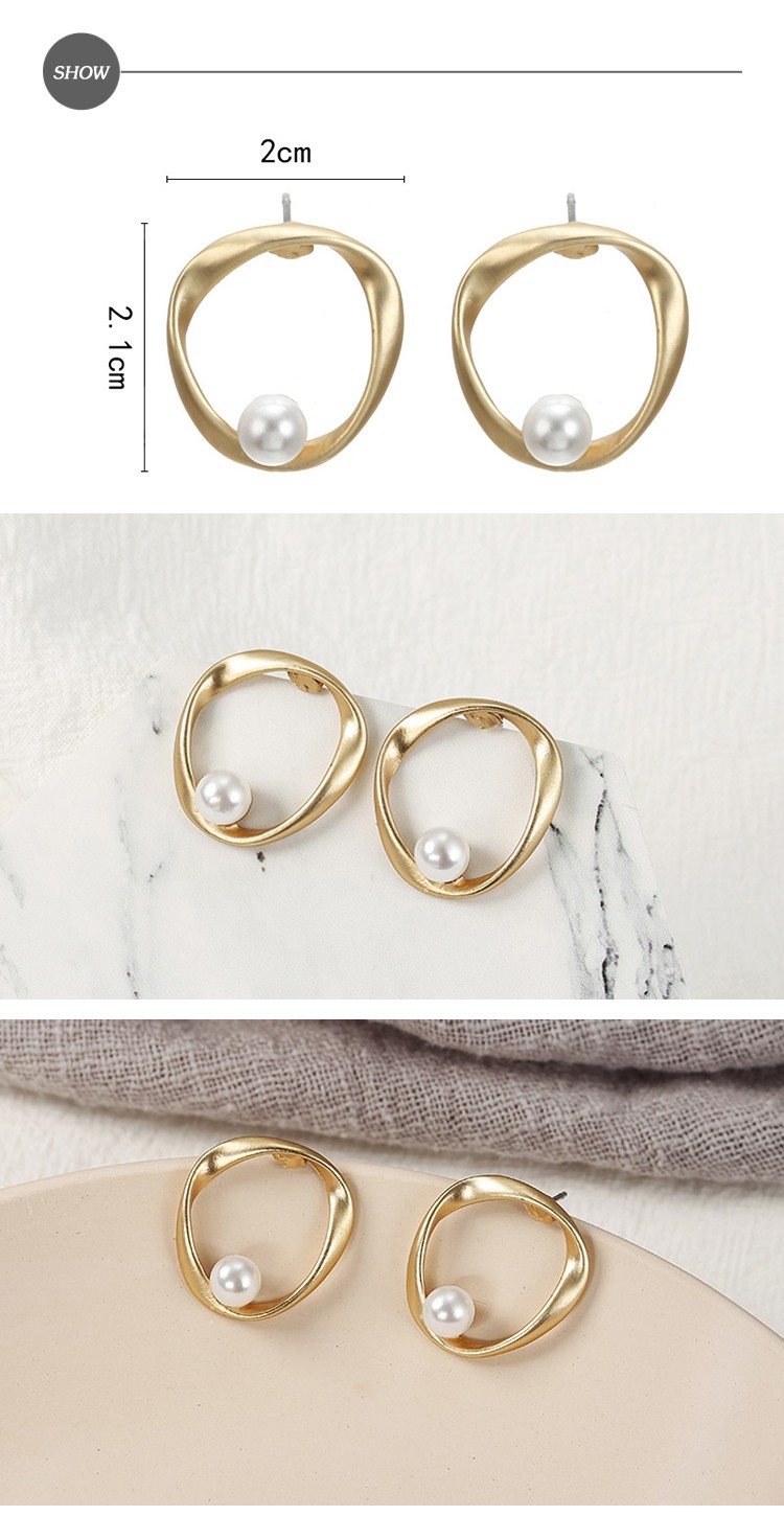 【INES】典雅復古幾何啞光金屬圈圈珍珠造型耳環