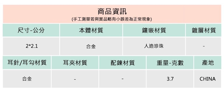 ◆合金飾品一經使用可能隨時間失去光澤或褪色,此為正常物理現象,妥善使用保存可延長飾品壽命。