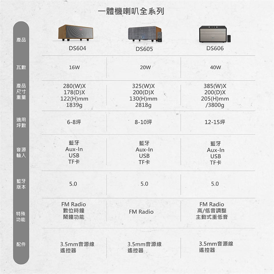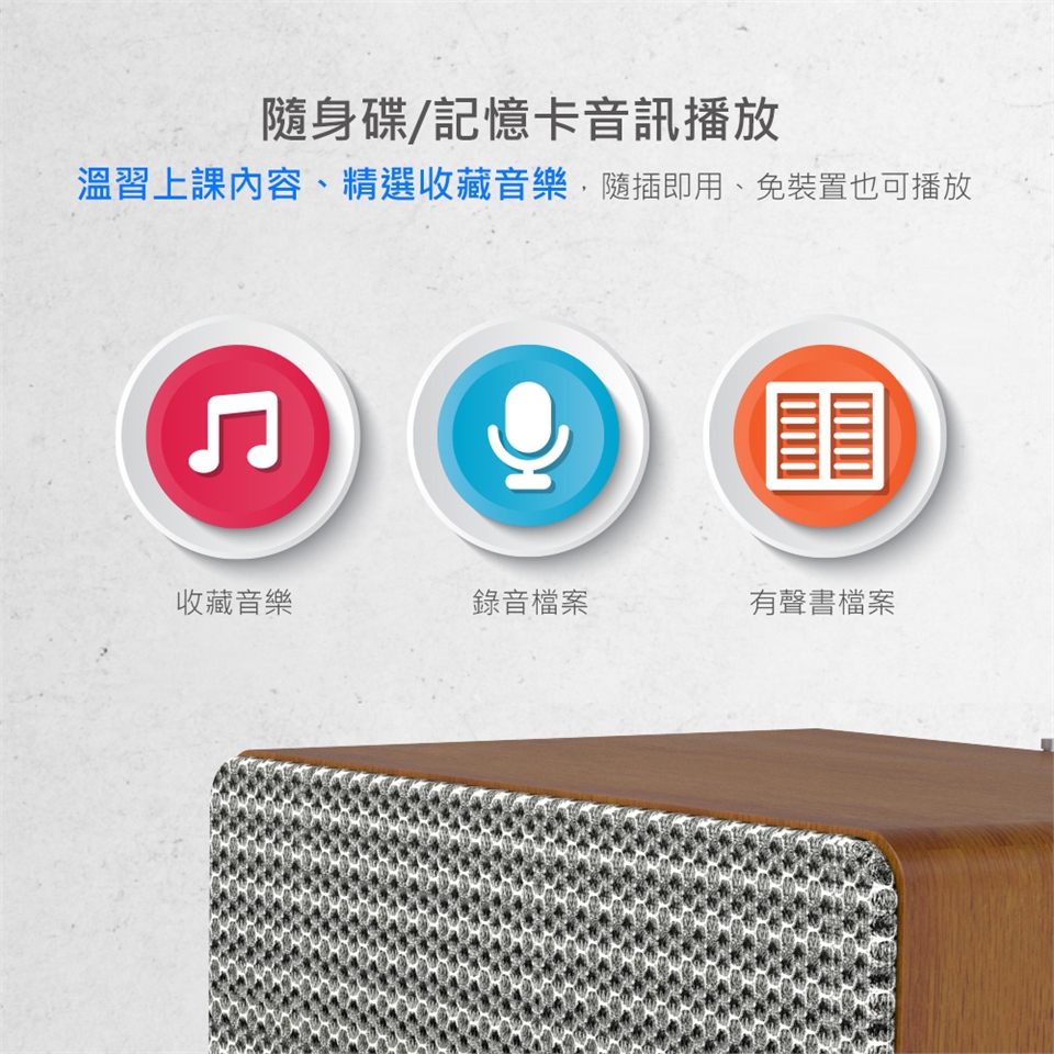 支援藍牙/Aux/隨身碟/記憶卡/FM播放