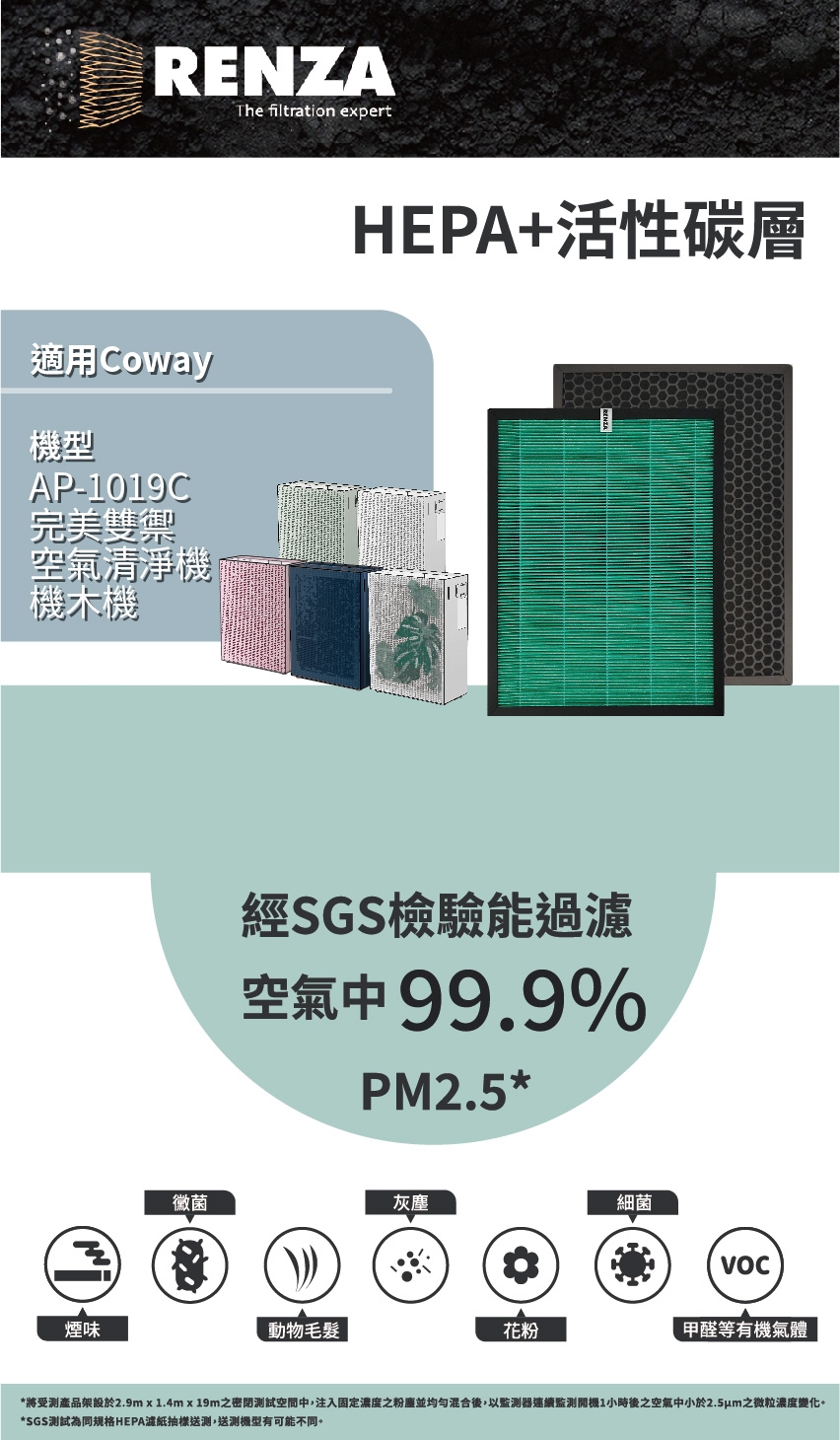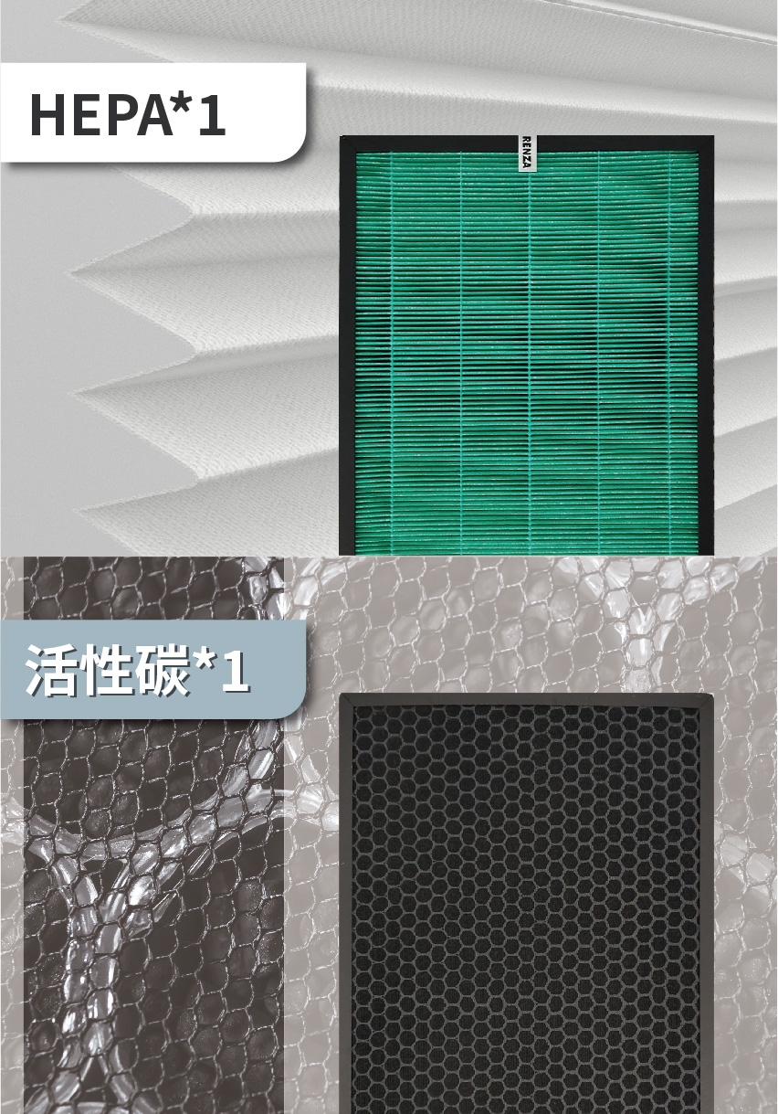RENZA  抗菌HEPA濾網+脫臭除甲醛蜂巢活性碳濾網