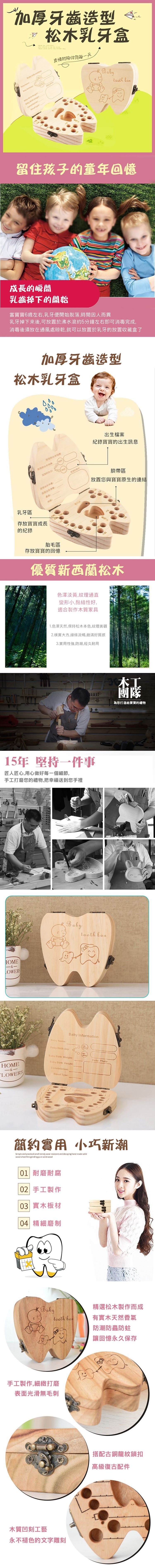 嚴選松木加厚設計,天然的木頭香味撲鼻而來,精緻雕刻專為您設計,保留小孩每一寸每一點回憶,還可擺放乳牙、臍帶、胎毛,精緻鎖扣,4cm加厚外殼,每一細節都呈現優質質感!