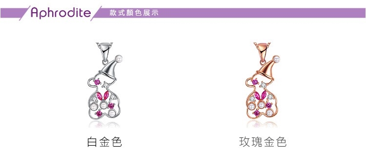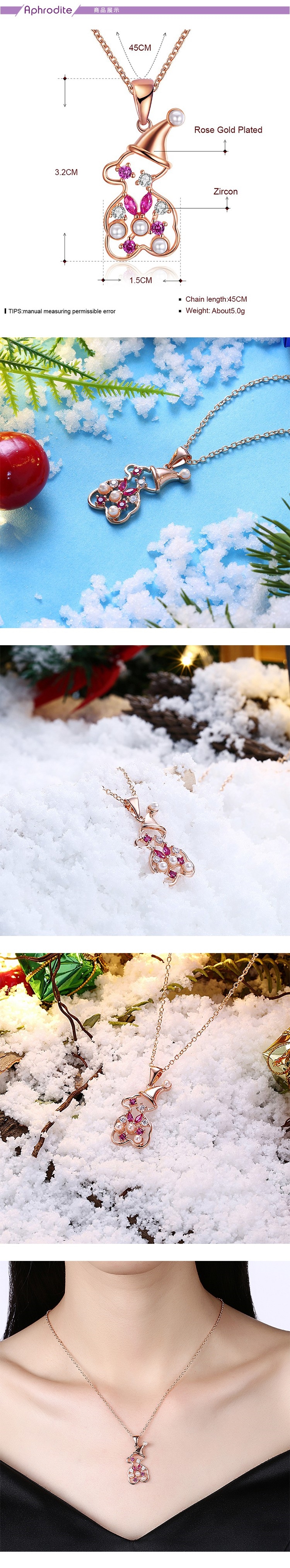 【Aphrodite 愛芙晶鑽】可愛小雪人彩鑽珍珠造型項鍊(玫瑰金色)