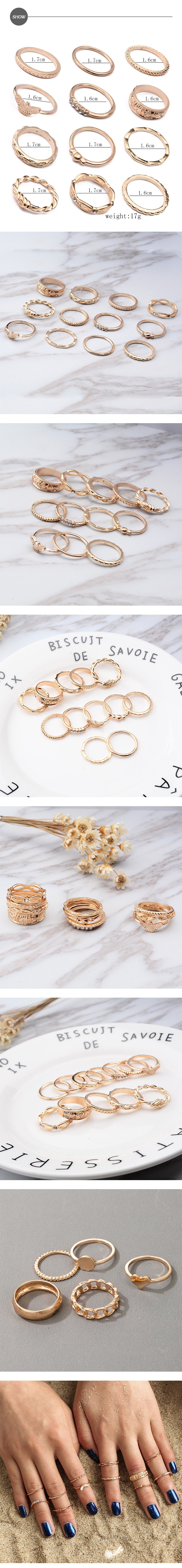 【I MISS U】幾何圈圈線條麻花元素金色關節戒12件戒指套組