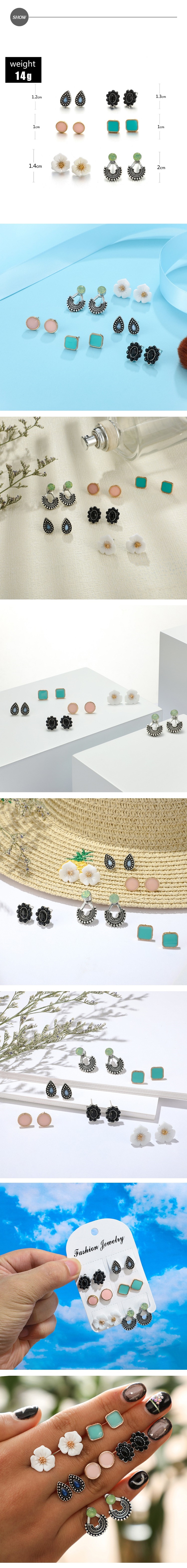 【I MISS U】復古白色花朵幾何寶石水滴元素6件耳環套組