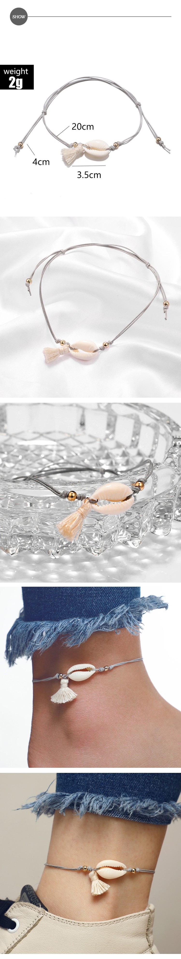 【I MISS U】雙層貝殼海螺棉繩流蘇編織金屬圓球造型腳鍊