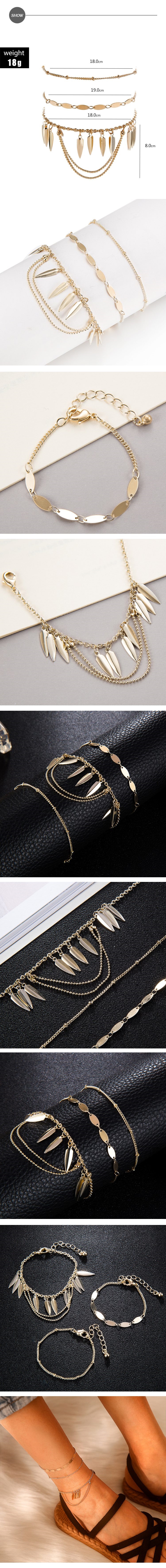 【00:00】歐美潮流葉片流蘇幾何珠鍊造型手鍊3件套組