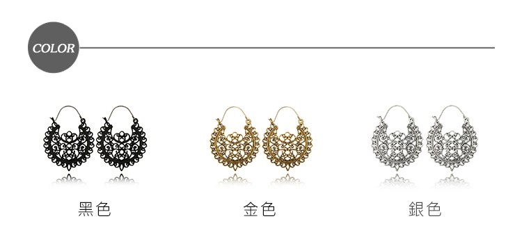 【I MISS U】波西米亞民族風螺旋花籃縷空雕花復古耳環 (3色任選)