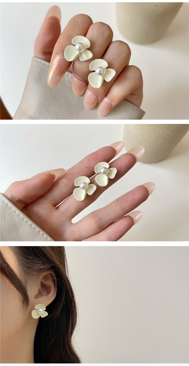 【MISS KOREA】韓國設計925銀針溫柔氣質白色花朵珍珠耳環