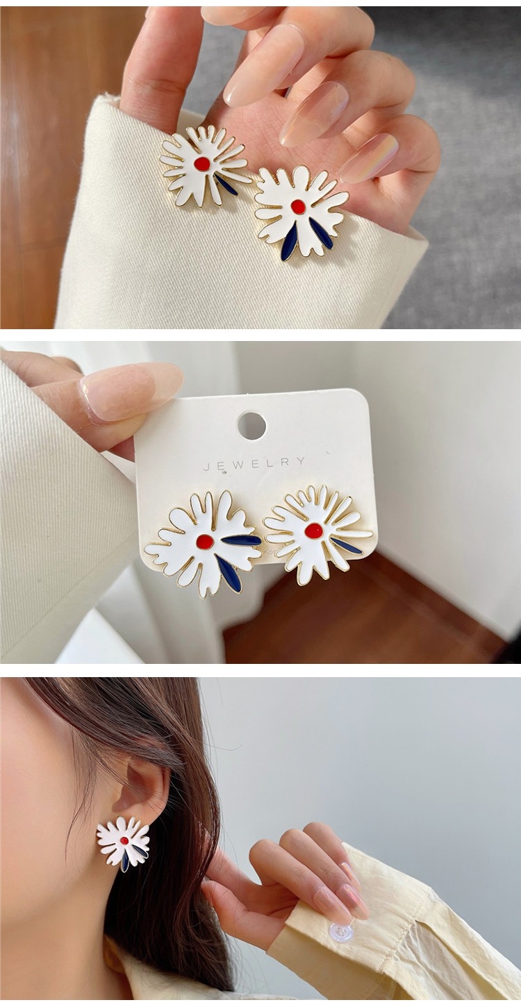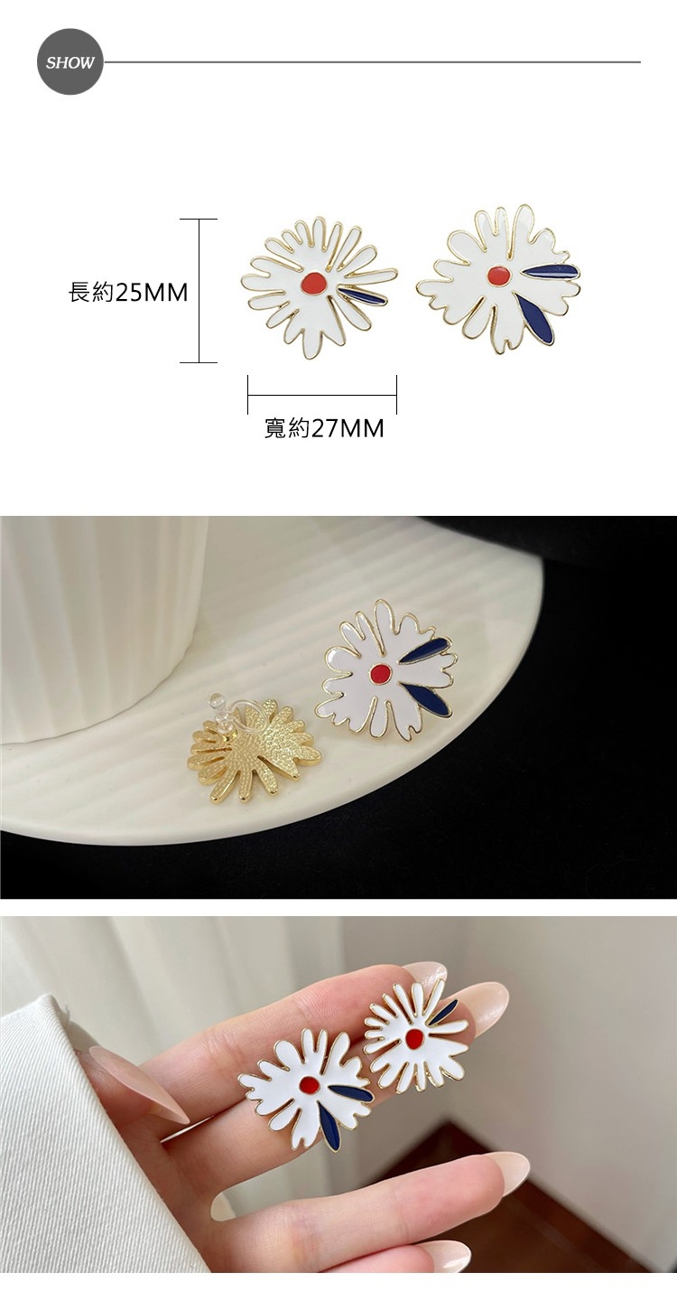 【INES】韓國設計925銀針法式小雛菊復古彩釉耳環