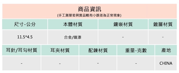 ◆合金飾品一經使用可能隨時間失去光澤或褪色,此為正常物理現象,妥善使用保存可延長飾品壽命。