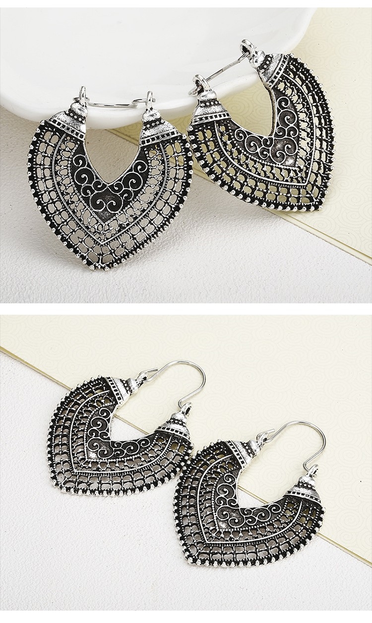 【I MISS U】復古波西米亞民族風縷空桃心個性耳環