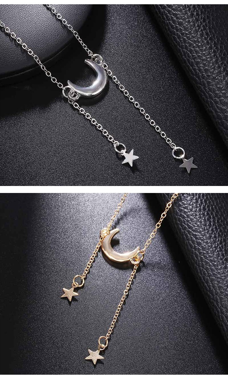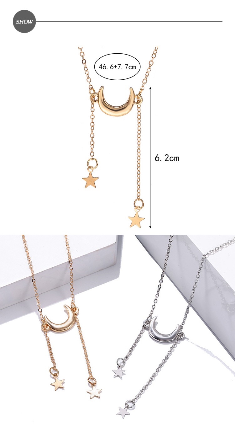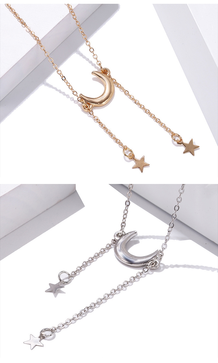 【00:00】歐美潮流金屬星星月牙造型項鍊 (2色任選)