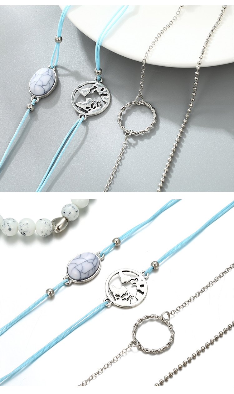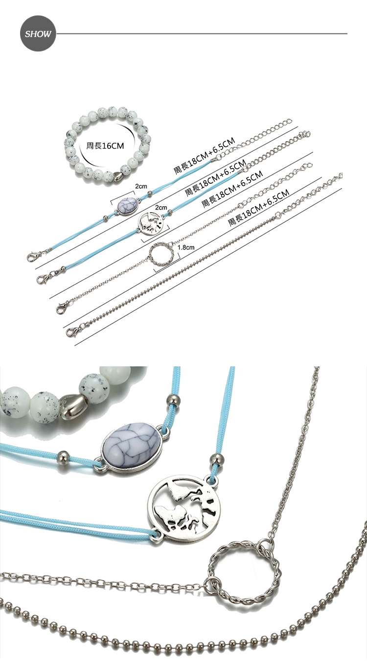 【I MISS U】波西米亞民族風白松石串鍊多層次造型手鍊5件式套組