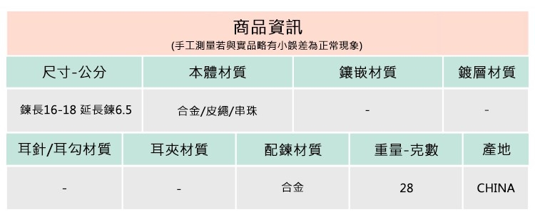◆合金飾品一經使用可能隨時間失去光澤或褪色,此為正常物理現象,妥善使用保存可延長飾品壽命。