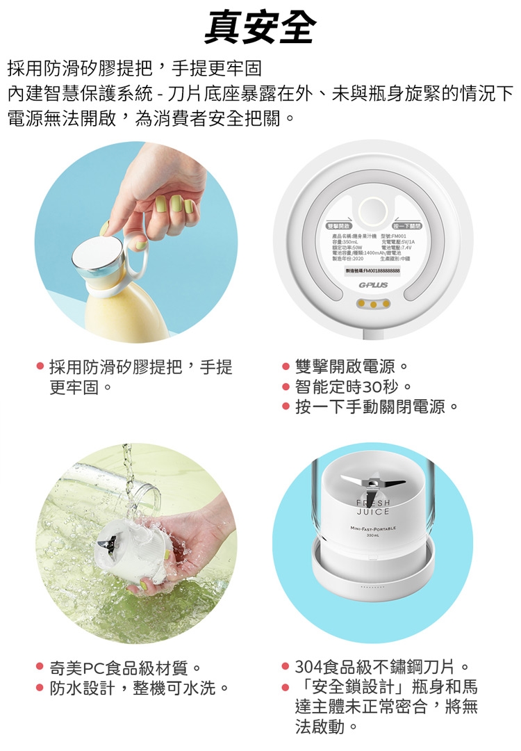 G-PLUS新款二代機 GPLUS鮮果G-隨身果汁機 FM001(附外出底蓋)