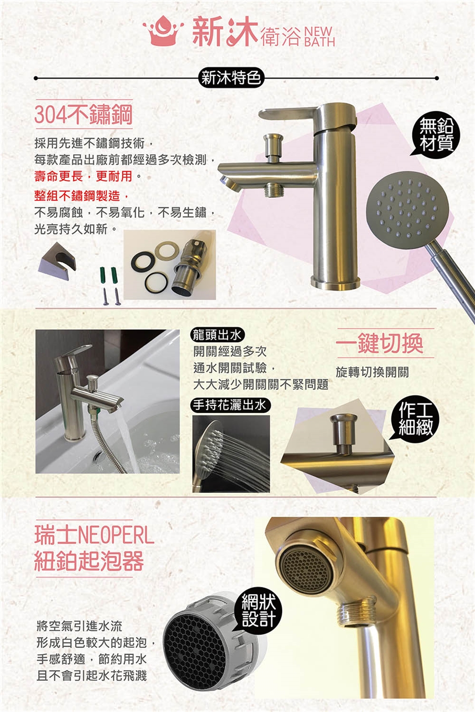不電鍍、不易生鏽、不含鉛 無鉛毒無汙染,拒絕水源二次汙染 為您的健康安全把關