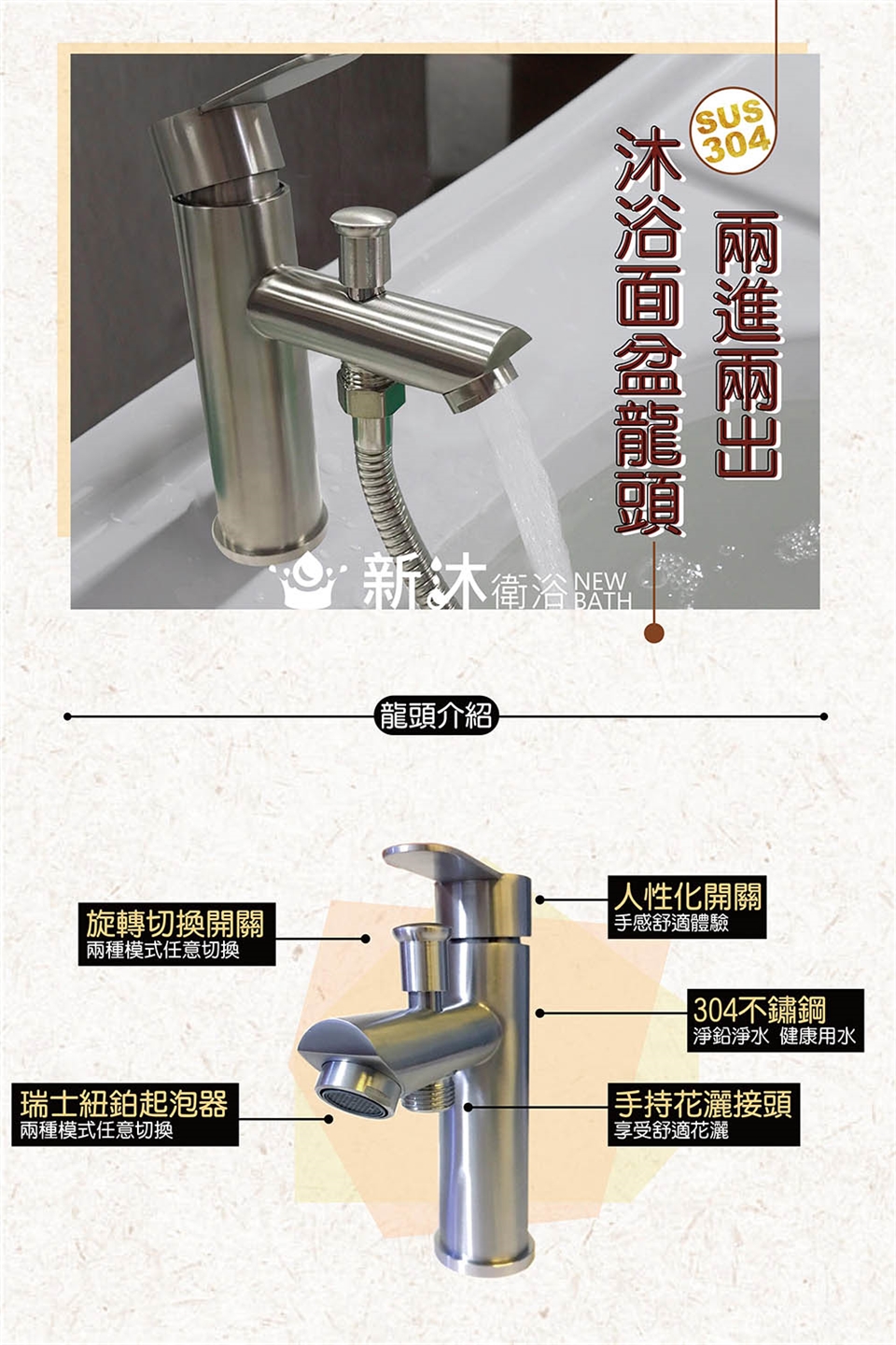 材質更好配件更優 全新SUS 304不鏽鋼面盆水龍頭