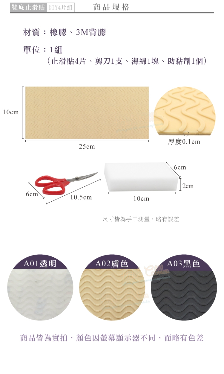 單位:1組(止滑貼4片、剪刀1支、海綿1塊)