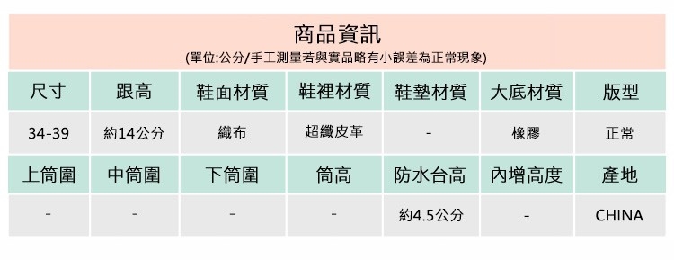 2.鞋類商品依功能及用途之不同,鞋底各有其止滑係數之個別不同,使用鞋類商品請用於正常平坦之路面,非雨鞋或雨靴類商品,請避免穿著於下雨濕滑路面上行走。