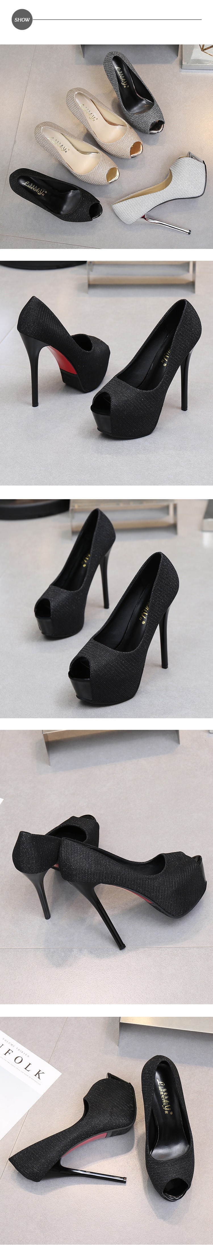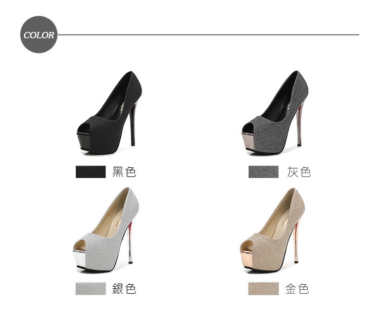 【MISS.K】魚口跟鞋高跟鞋/璀璨金絲亮面織布魚口露趾14CM性感高跟鞋 黑