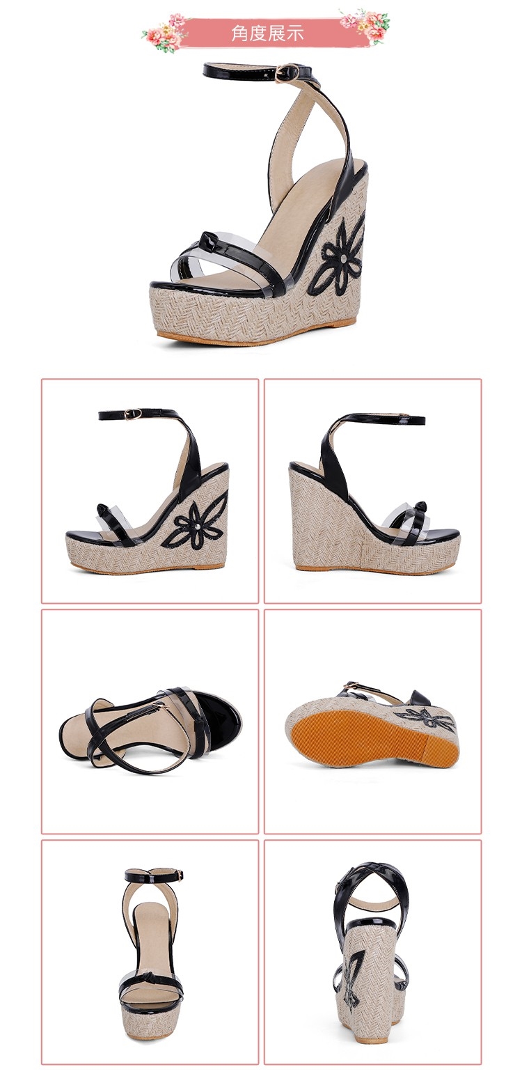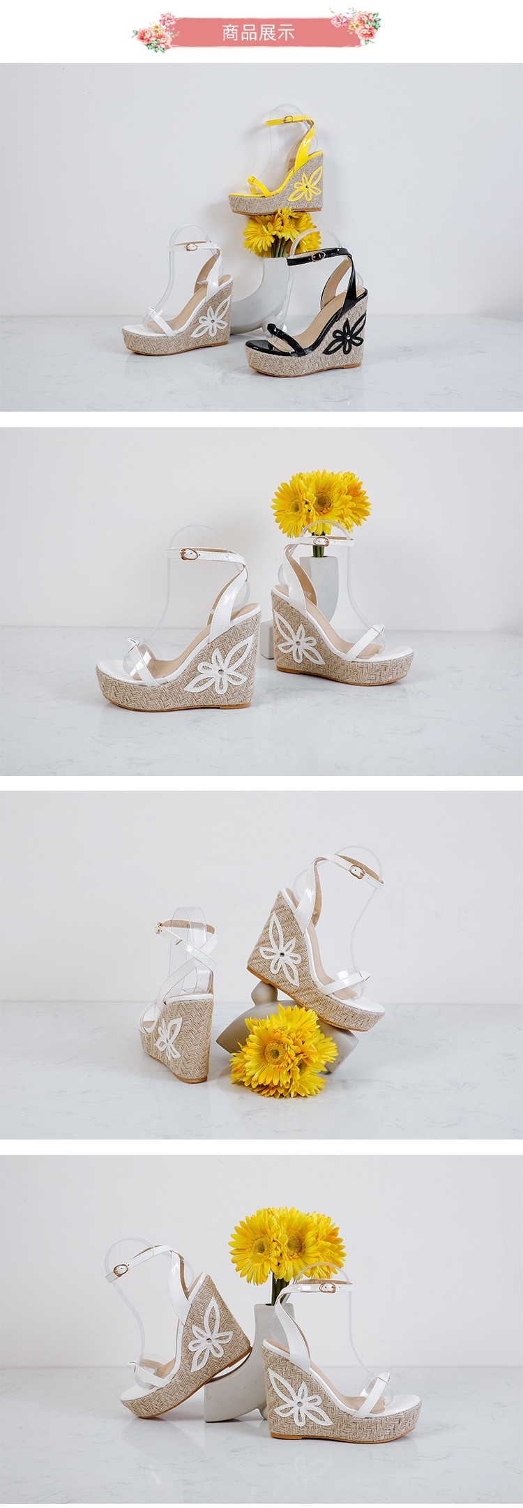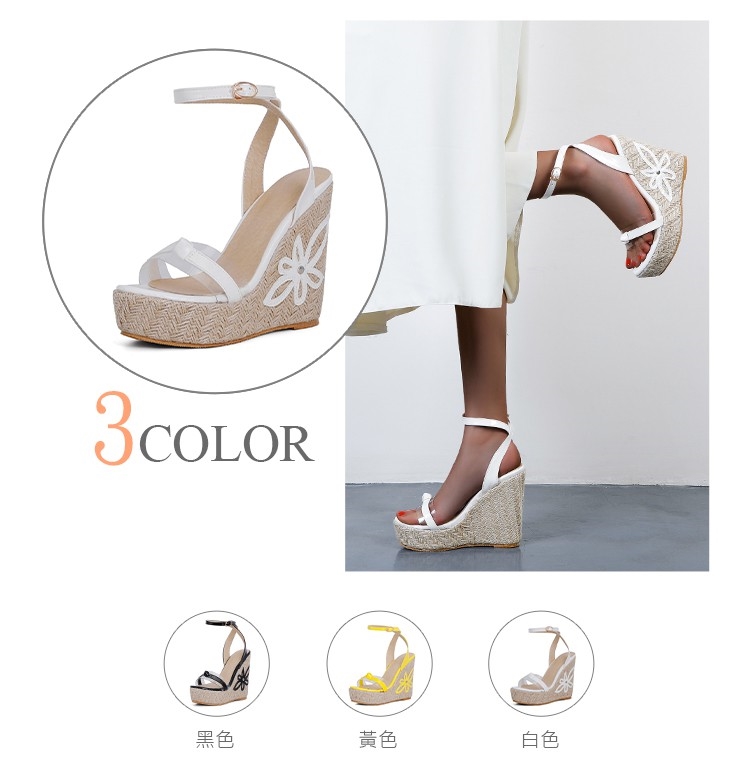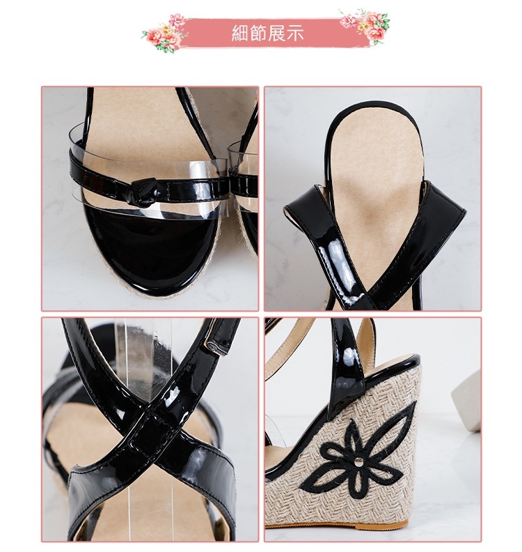 【Kissxxx】厚底涼鞋楔形涼鞋/透明拼接一字帶花結縷空繫帶厚底楔形涼鞋 白