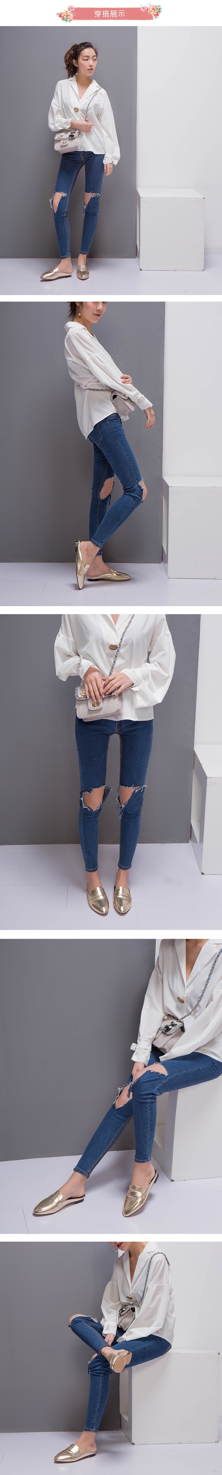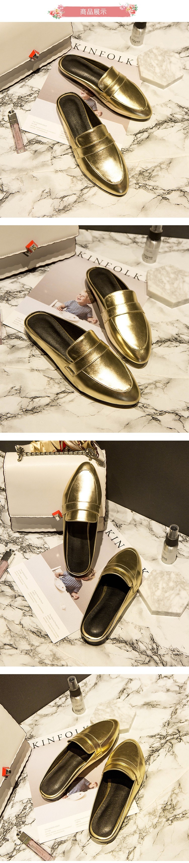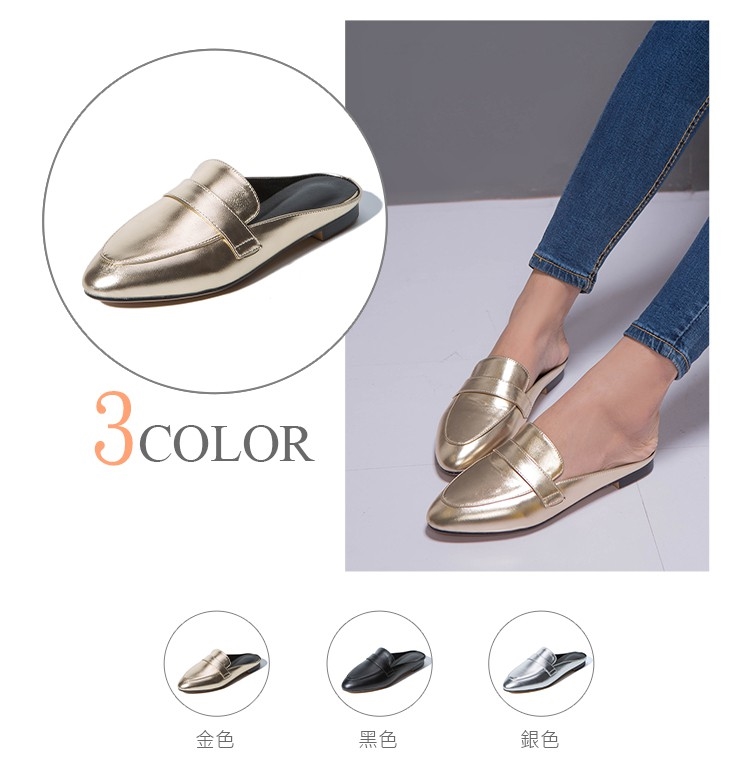 【Kissxxx】粗跟穆勒鞋低跟穆勒鞋/金屬質感亮皮時尚包頭低跟穆勒鞋 金