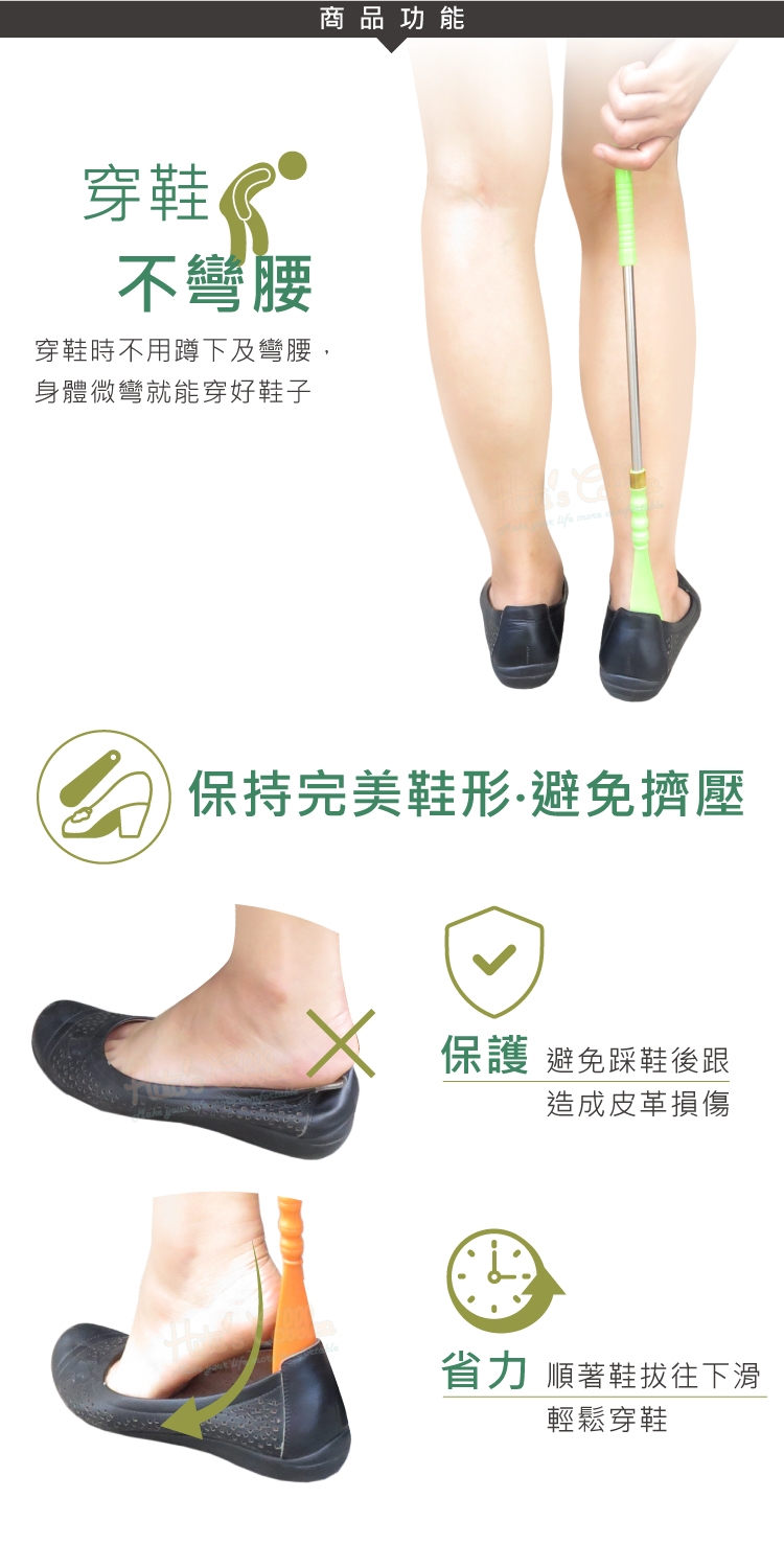加長手柄:免彎腰穿鞋,穿鞋更便捷、自在無負擔