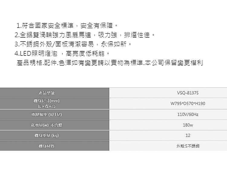 抽油煙機:購買前請先確認--住家安裝位置、尺寸大小、商品顏色,一經安裝恕不退換。