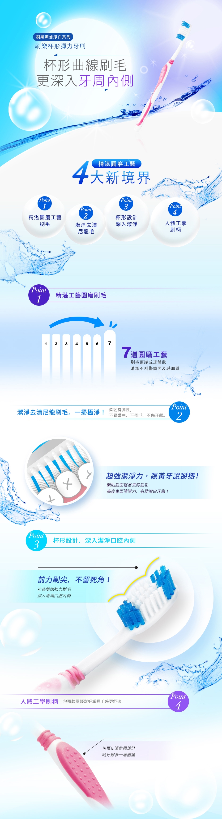 請配合正確刷牙習慣,並2-3個月更換新牙刷,以免刷毛彈性降低、細菌孳生,影響口腔健康。