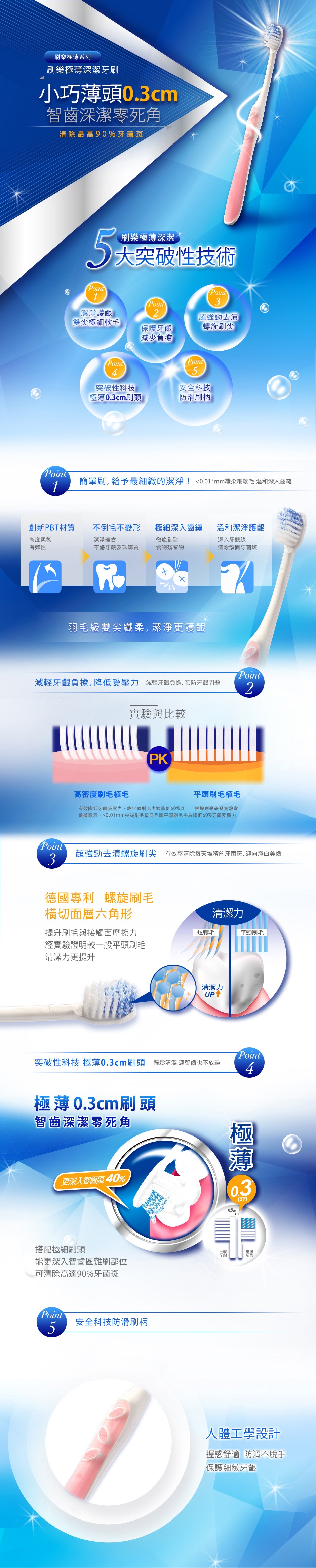 請配合正確刷牙習慣,並2-3個月更換新牙刷,以免刷毛彈性降低、細菌孳生,影響口腔健康。