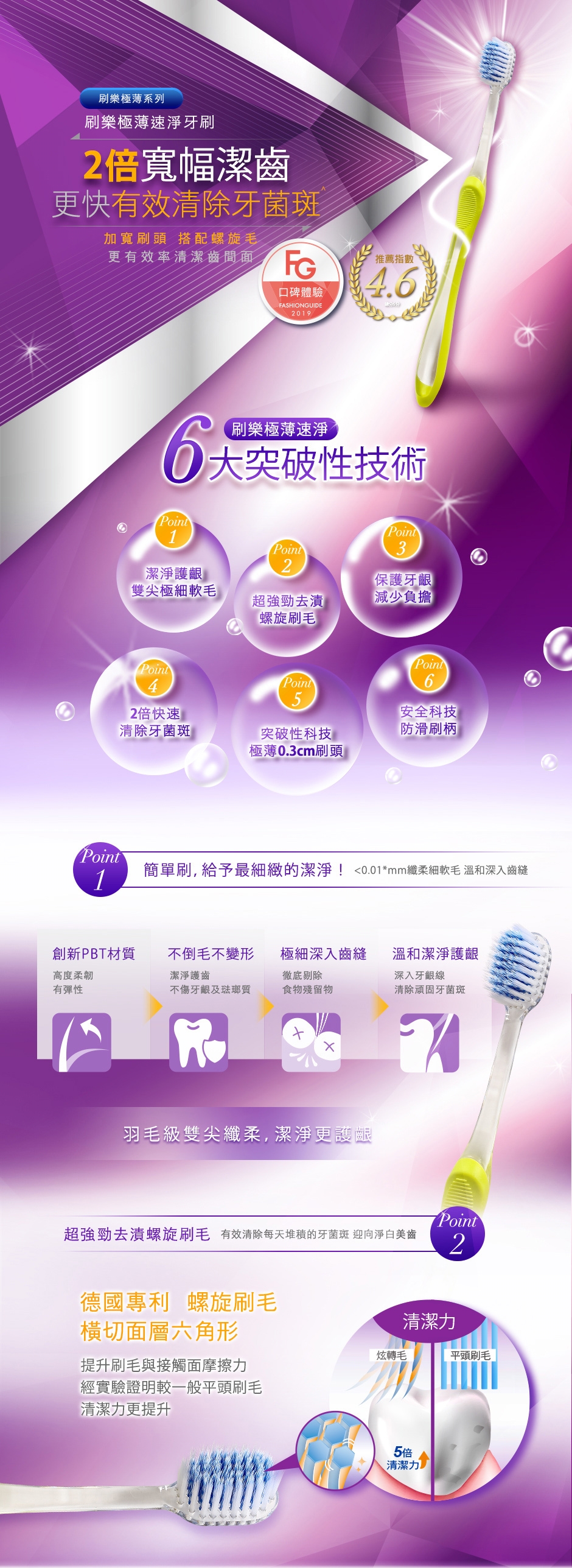 請配合正確刷牙習慣,並2-3個月更換新牙刷,以免刷毛彈性降低、細菌孳生,影響口腔健康。