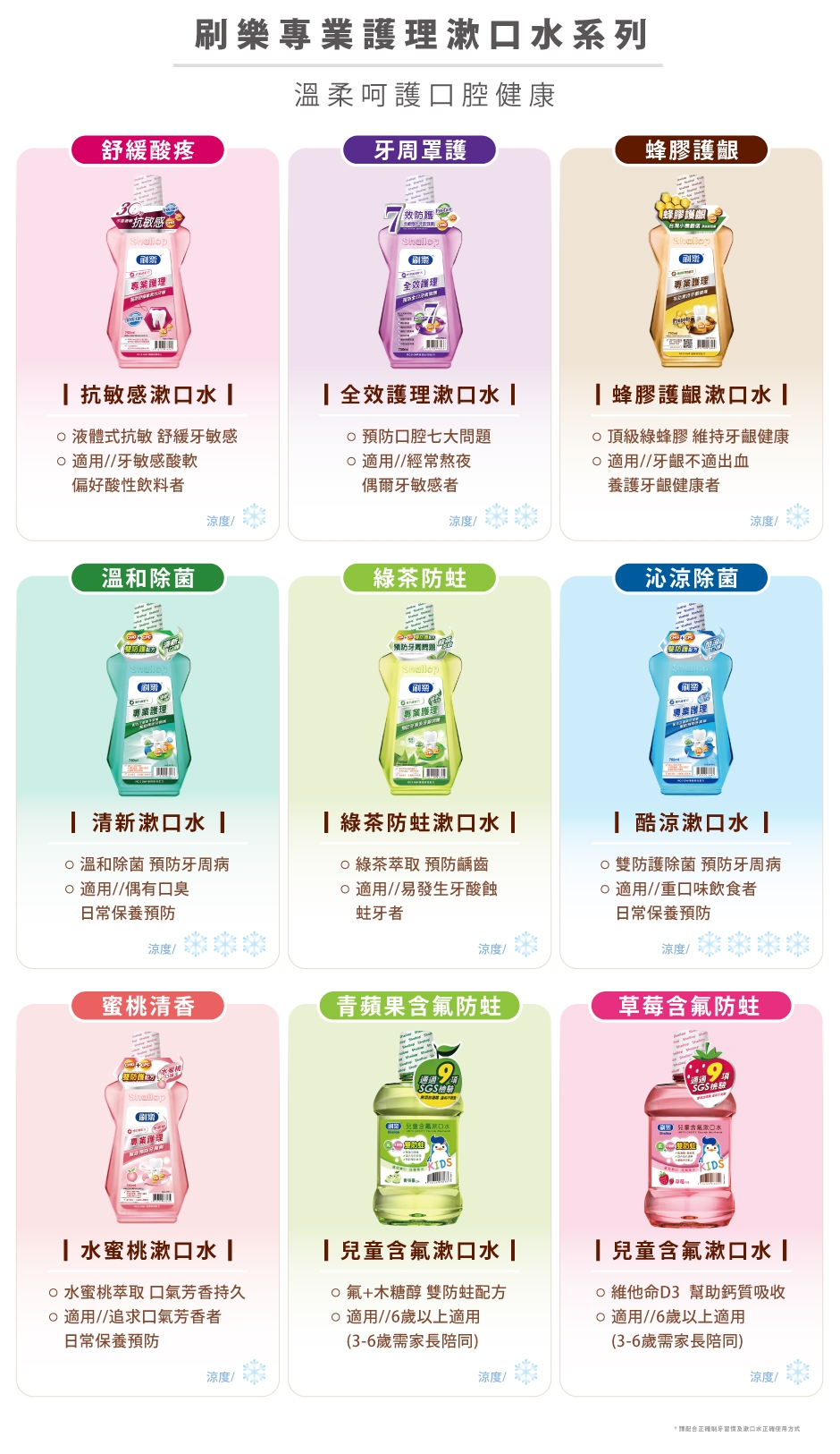 1. 3歲以下幼兒不建議使用,3-6歲兒童請諮詢牙醫師並於父母指導下使用,以避免誤食。