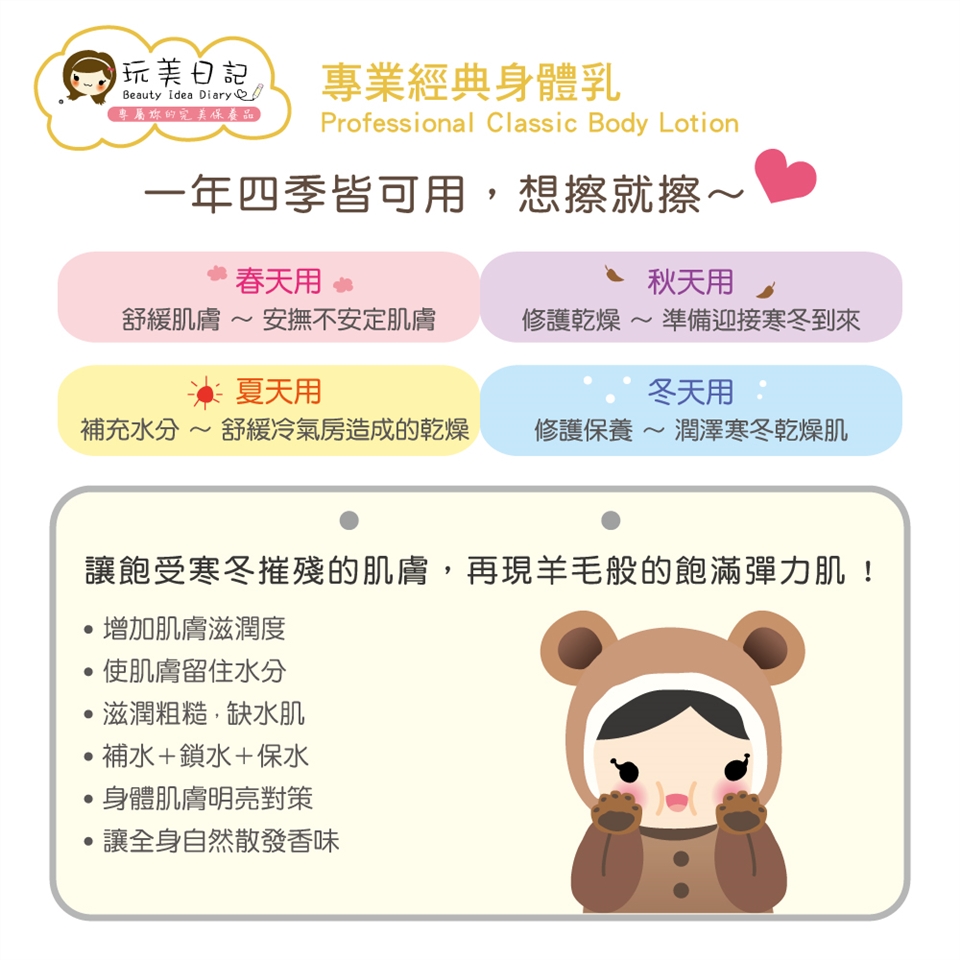 沐浴後或肌膚乾燥時,取適量均勻塗抹全身或局部較乾燥處