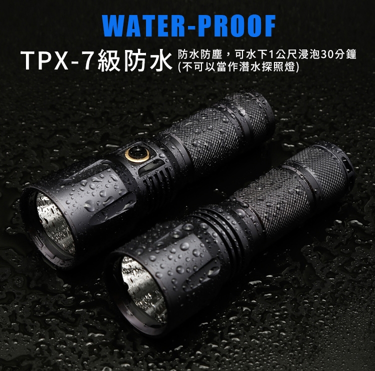 ●美國CREE XPL HI燈珠組/1200LM亮度/色溫6500K/射程495公尺/1公尺防跌落