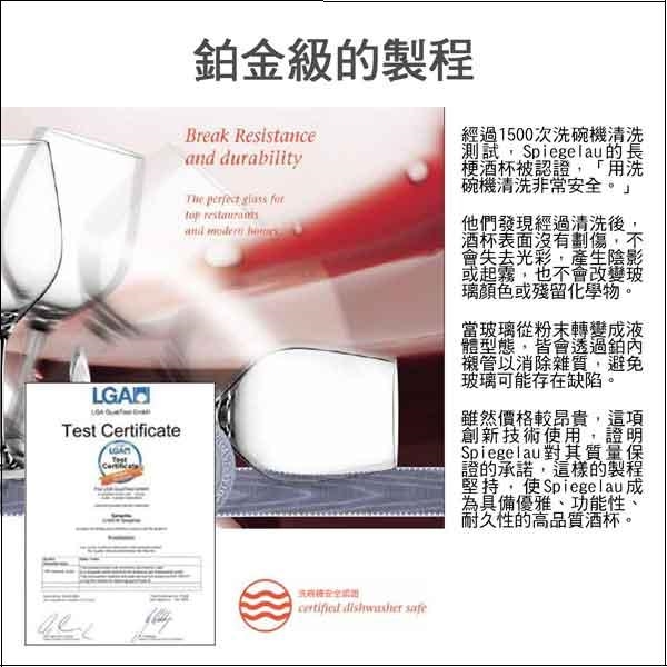 Spiegelau追求卓越產品的堅定承諾,結合研發創新的能力與平易近人的價位,當大多數其他玻璃製造同業相繼消失於市場時,卻能持續蓬勃發展。承繼了超過五個世紀的純手工工匠技術與創新,結合最先進現代化的玻璃製造設備,生產出最適合現今愛酒人士的高級酒杯。 |