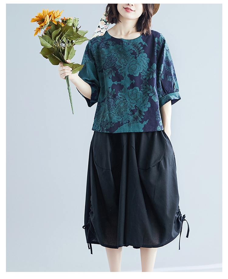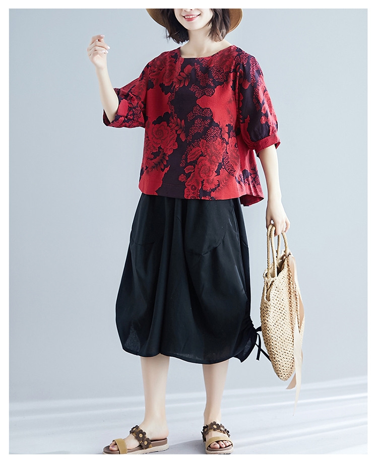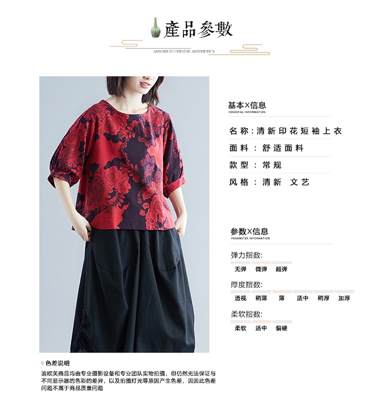 ☆材質:棉麻布料br/☆顏色:綠色/紅色/白色br/☆尺寸:M~XXLbr/☆產地:中國br/☆QC 衣服(平量英吋表)