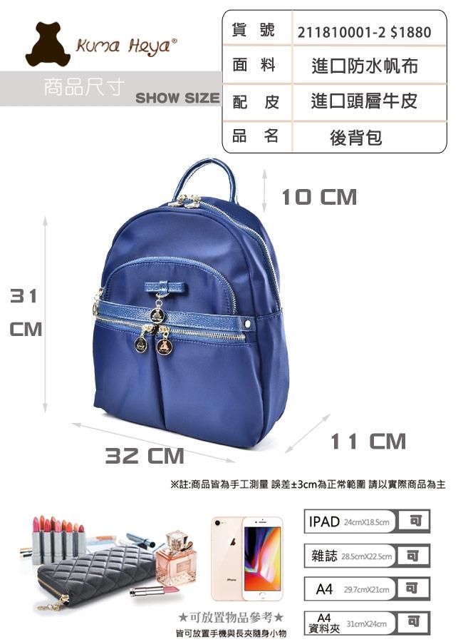 收納:內插袋1個/內拉鍊袋1個/前後拉鍊袋/前口袋2個