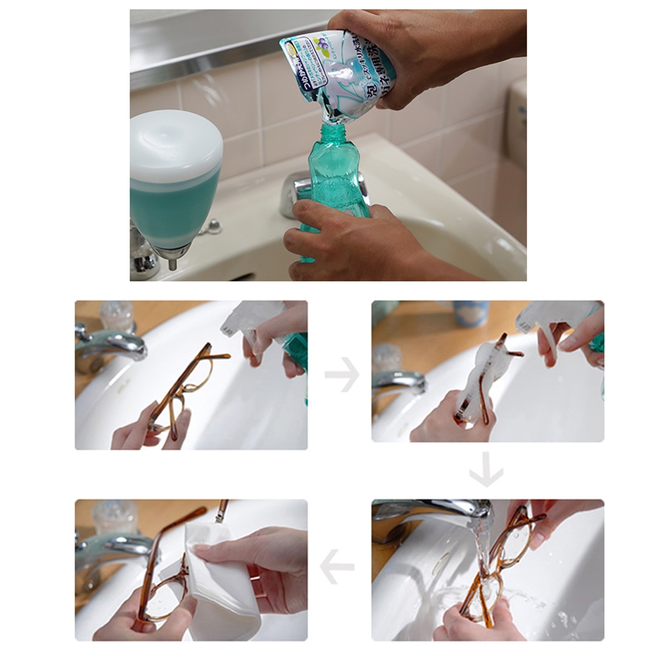 特色:只需噴在眼鏡上,無需搓洗,用水沖即可去污除菌。汗液和皮脂污垢,鼻托與耳朵接觸面,連肉眼無法看到的雜菌,也可輕鬆去除。中性配方,不傷鏡片和鏡框。