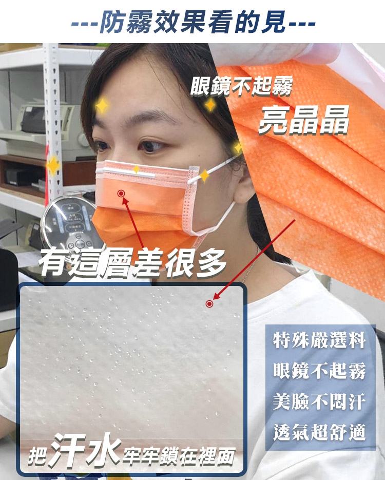 品名:眼鏡防霧型醫療級三層口罩50片/盒-南瓜橘