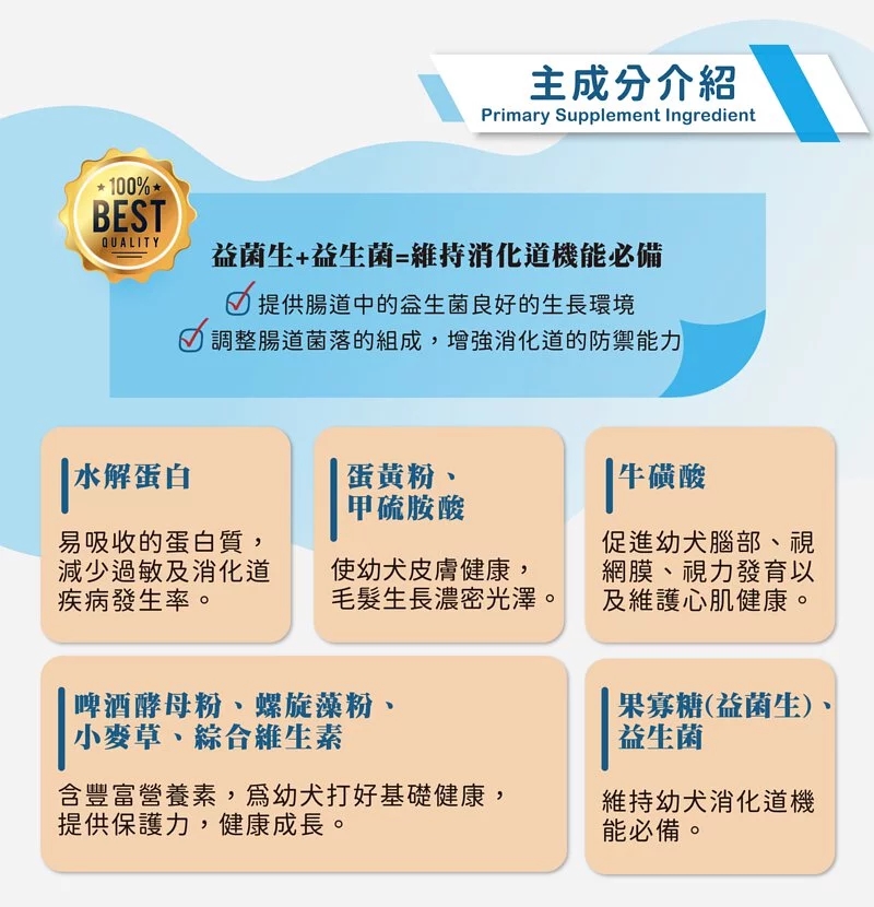 本產品為寵物用營養補充品,若有其他疾病請遵循獸醫師指示使用。