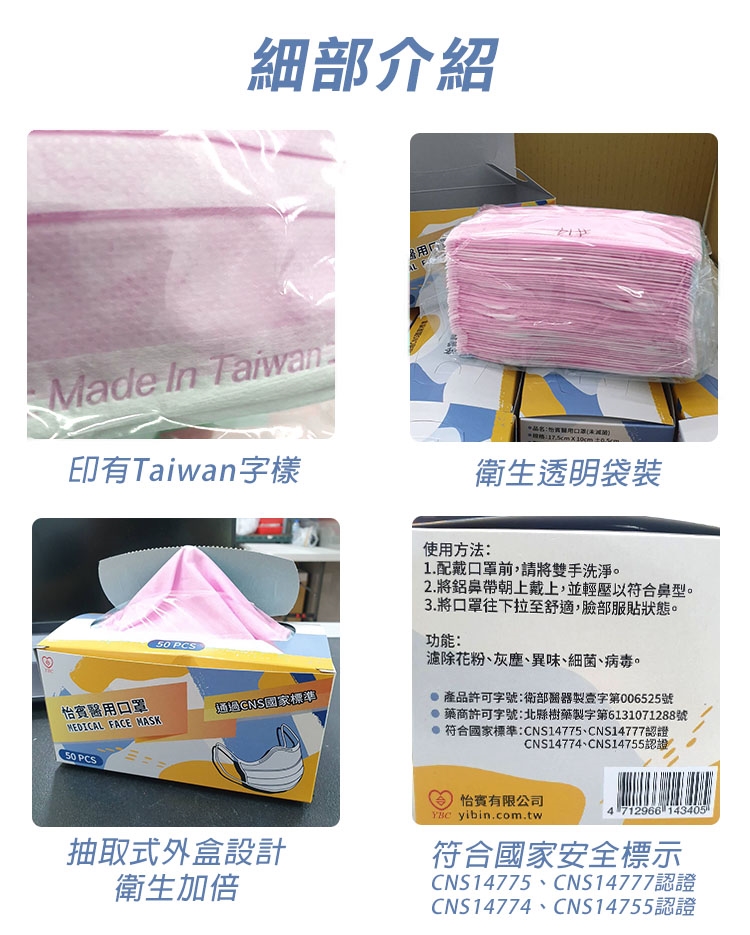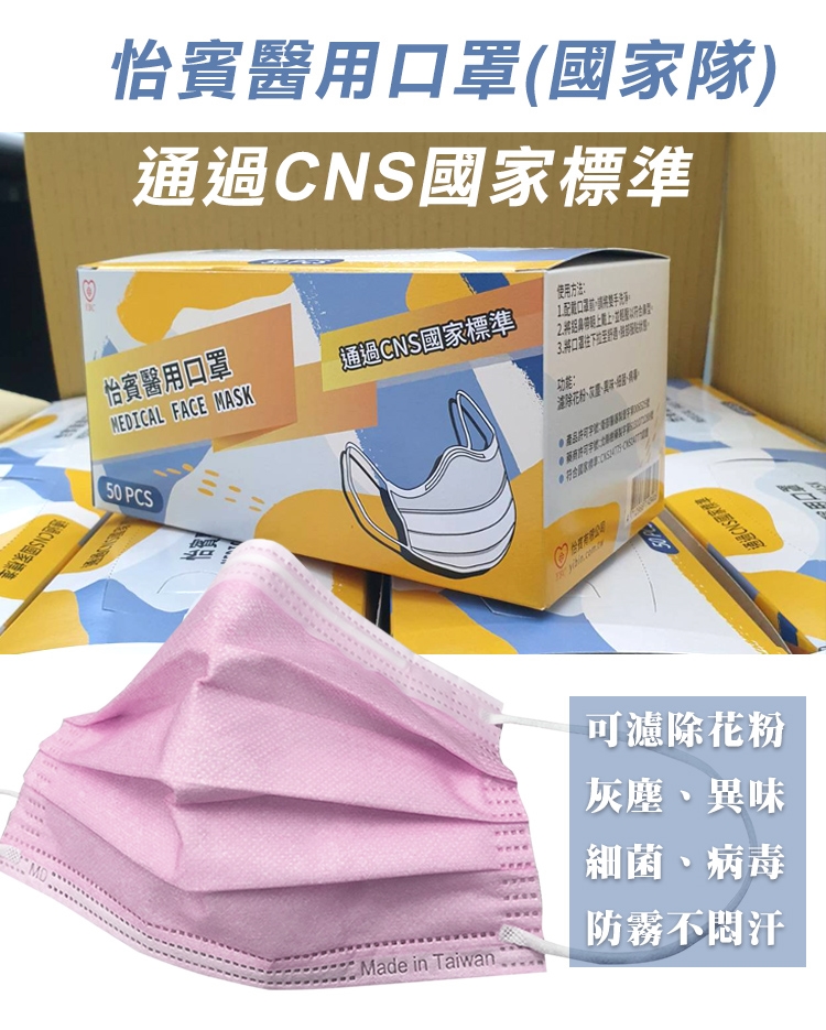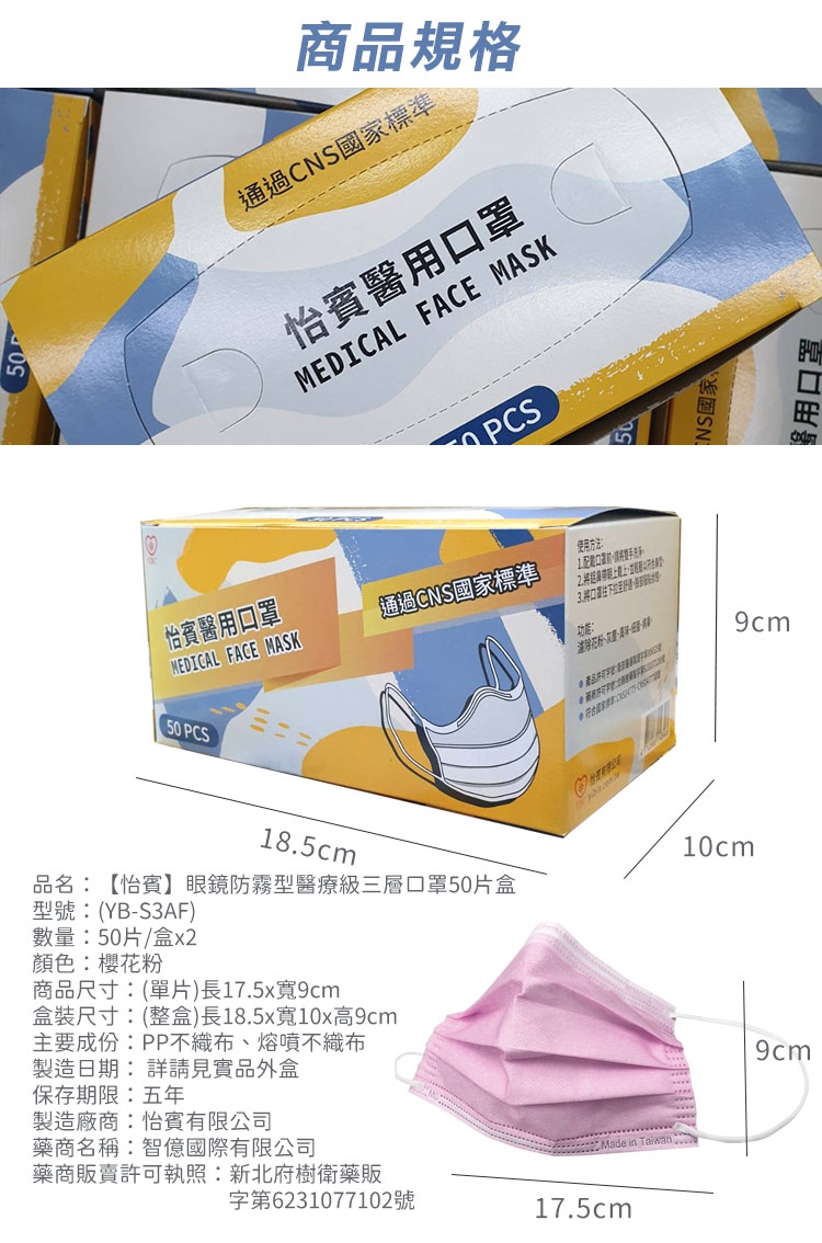 【怡賓】眼鏡防霧型醫療級三層口罩50片/盒x2-櫻花粉(YB-S3AF)